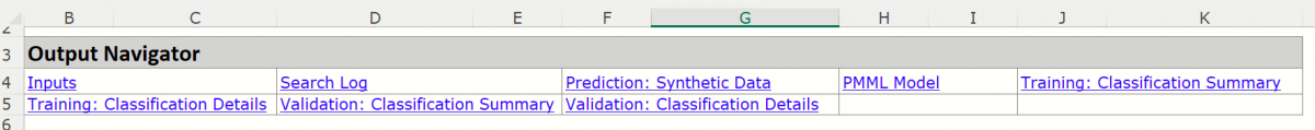 Double click the KNNC_Output sheet.   The Output Navigator is included at the top of each output worksheet.  The top part of this sheet contains all of our inputs.  At the top of this sheet is the Output Navigator.