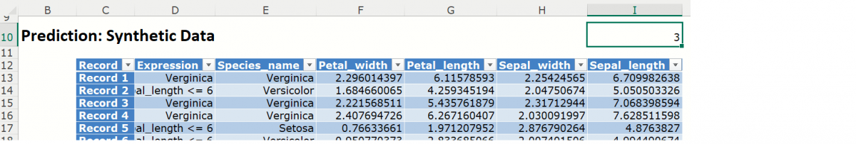 The results in this column are either Setosa, Verginica, Versicolor, if a record’s Sepal_width is greater than 6, or Sepal_length <= 6, if the record’s Sepal_width is less than or equal to 6.