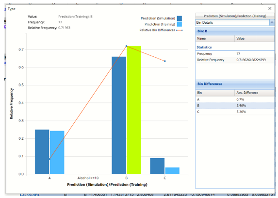 Click Prediction (Simulation) and select Prediction (Training) in the Data dialog to display a frequemcy chart based on the Training partition.
