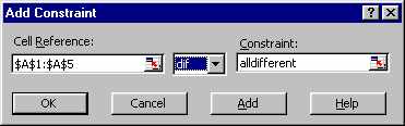 Field-installable Solver engines also support the "alldifferent" constraint, implementing it in different ways. This allows you to model the problem in a high-level way, and try a variety of Solver engines to see which one yields the best performance on your problem.