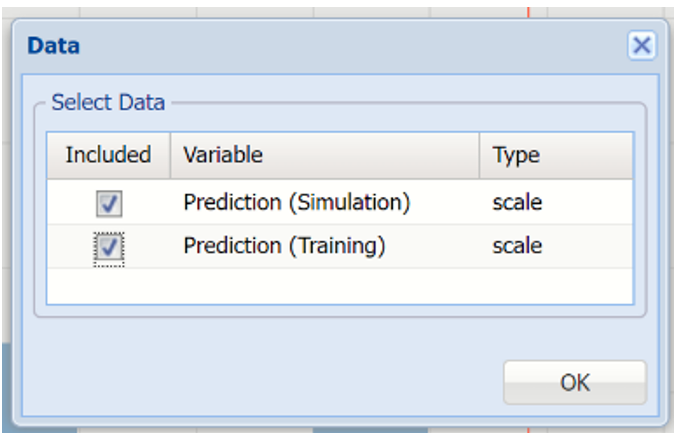 Click Prediction(Simulation) and Prediction (Training) to change the Data view.