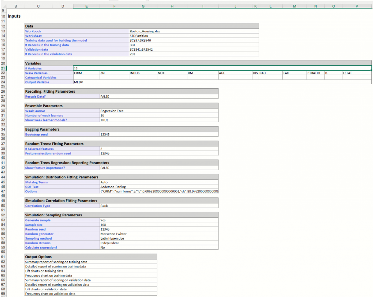 This worksheet contains three sections: the Output Navigator, Inputs and Boosting Method.