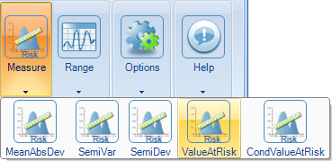 The Range gallery provides easy ways to compute the Maximum, Minimum, or Range of an uncertain function, or the estimated probability that it will be less than or equal to a Target that you specify. You can obtain any Percentile value from 1% to 99%, and you can obtain a Frequency distribution of outcomes, in a range of cells covering the number of bins and bin sizes that you want. You can even put the raw Monte Carlo trial data for an uncertain function on the worksheet.