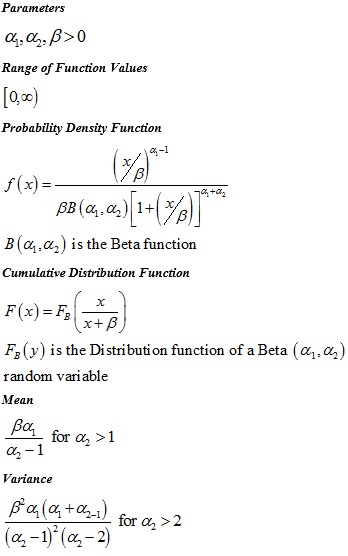 PsiPearson6 (α1, α2, β) is a distribution with a lower bound of 0, and a mode just beyond the lower bound. The Pearson6 distribution is sometimes called the Beta distribution of the second kind.
