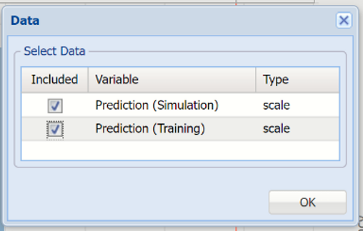 To change the data view, click the Prediction (Simulation) button. Select Prediction (Training) and Prediction (Simulation) to add the training data to the chart.
