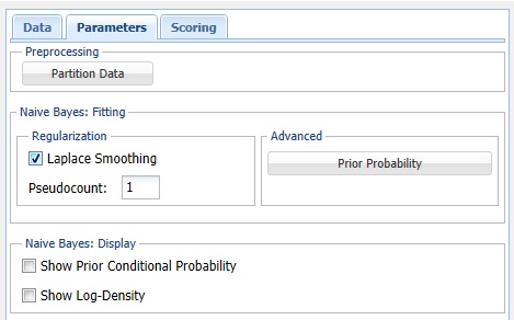 On the Data Science ribbon, select Classify - Naive Bayes to open the Naive Bayes - Step 1 of 3 dialog. Following are descriptions of the options available from the three Naive Bayes dialogs.