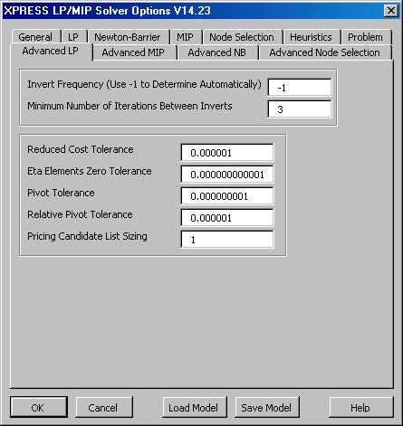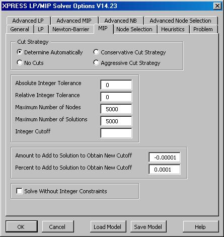 XPRESS Solver Options Advanced MIP tab (46392 bytes)